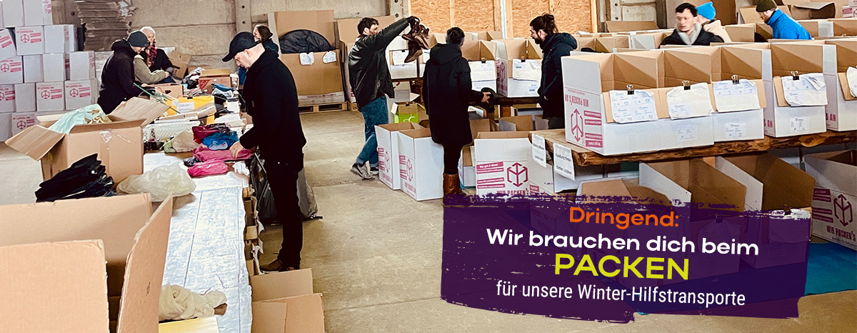 Die Wintertransporte für Menschen auf der Flucht müssen jetzt richtig schnell raus. Gerade jetzt ist das super wichtig, weil die kalte Jahreszeit für Menschen auf der Flucht besonders hart und herausfordernd ist – jedes Paket zählt!